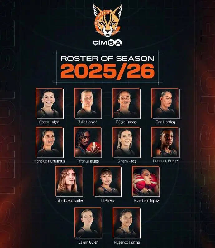 北京时间2025年8月14日,土耳其女子篮球超级联赛球队梅尔辛公布了2025-26赛季球队15人大名单,中国球员李月汝在列。梅尔辛上赛季获得了土耳其杯冠军、FIBA女子篮球欧洲联赛亚军、土耳其女子篮球超级联赛亚军。本赛季梅尔辛将继续征战FIBA女篮欧洲联赛,而李月汝将首次出战这项赛事。梅尔辛也将是李...